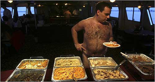 Qualche indirizzo? Il Mercantile Grill a Pearl Street e il Nake Launch Bar & Lounge a Thomson Street, entrambi in Downtown Manhattan, oppure il Pete's Downtown in Water Street a Brooklin. Ci sono naturalmente anche i locali che si rivolgono al pubblico gay, come l'HotNude Yoga al numero 100 della 23ma Strada, oppure quelli che alla cena abbinano spettacoli di cabaret in cui sono protagonisti comici rigorosamente nudi, come accade al Peolpe's Improv Theatre a Chelsea.